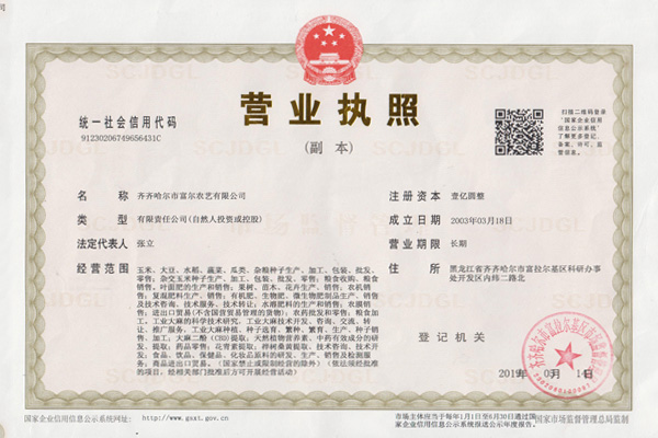 齐齐哈尔市富尔农艺有限公司企业营业执照