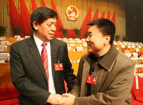 中央政治局委员、中央书记处书记,中央办公厅主任,中央直属机关工委书记,原黑龙江省省长栗战书与全省人大代表、齐市富尔农艺有限公司张立董事长亲切握手交谈。勉励富尔一定要加强科技创新,做大做强民族种业,为现代农业服好务。
