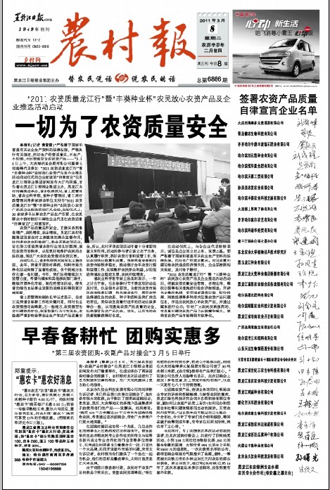 2011年3月8日《黑龙江农村报》第一版