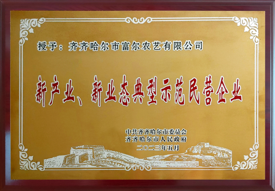 会上,中共齐齐哈尔市委、齐齐哈尔市政府为50家民营企业颁奖授牌,齐齐哈市富尔农艺有限公司获得“新产业、新业态”典型示范民营企业。