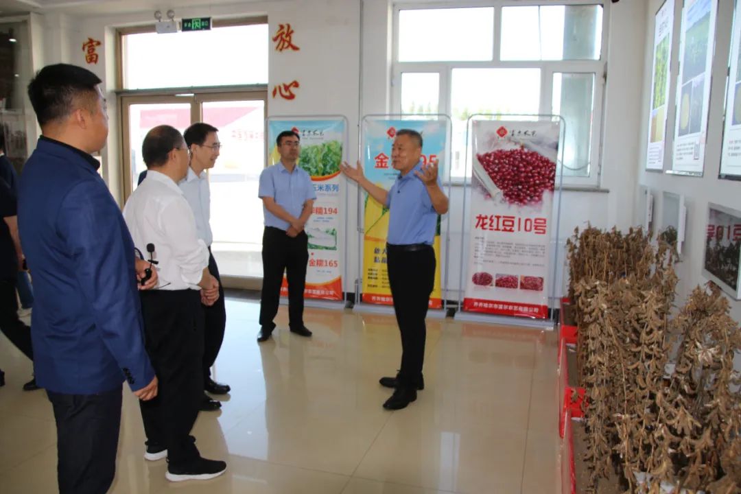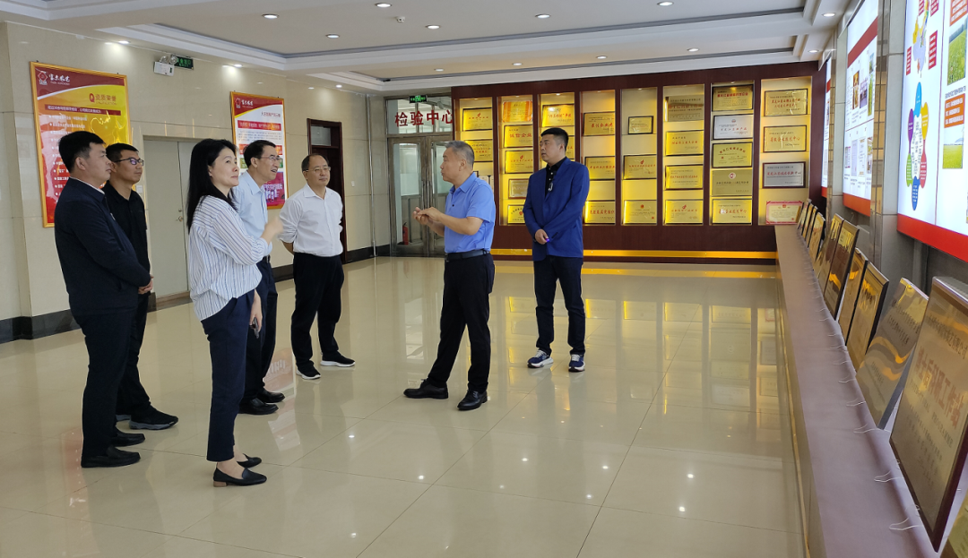 注:岳仲明主任、董洪岩巡视员一行参观公司种子销售展厅。