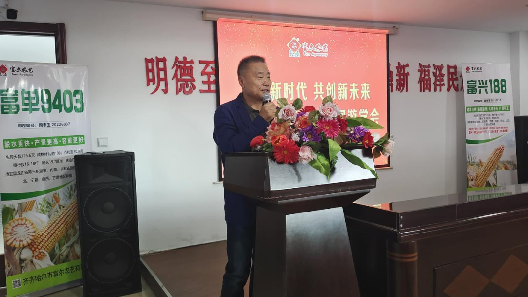 最后,富尔农艺董事长张立做了总结讲话。他说,近年来,富尔农艺聚焦科技,通过不断整合资源要素,先后建立了博士后工作站和分子实验室,生物育种基地和品种展示基地等,逐步提升综合科研实力,搭建起了基于DH+GS技术结合的工厂化育种创新体系,并且突破了一系列前沿育种关键技术,稳步推进生物育种产业化应用,已经培育出一大批具有新种质资源优势的玉米新品种40余个,既可以满足种植者的多抗的性状需求,又可以满足下游市场的细分需求,已经具备了黑龙江省当家品种的苗头,可以有力助推我国乃至我省新一轮玉米产品更新换代,并助力核心经销商们快步进入“先富时代”。在全球知名玉米育种家孙书库博士十年如一日的悉心指导下,在王树全团队勤奋开拓下,以富尔农艺种质资源库材料为基础,已经筛选出了一批具有欧美与本土优异血缘融合的骨干亲本,并演化出了一批具备极强市场穿透性的大单品,即将投放市场,相信不久就可以形成星星之火的燎原之势,并助力核心经销商们跃入“财富时代”。未来,富尔农艺将凭借DH和GS技术的有机整合的科研抢跑优势,在此基础上会继续融合表型技术、机器学习等,有望构建起智能化育种技术体系,始终保持着科研的先发优势,确保核心经销商由先富时代到财富时代再到共富时代的层层升级,让我们携手一起见证富尔种芯的玉米新时代!