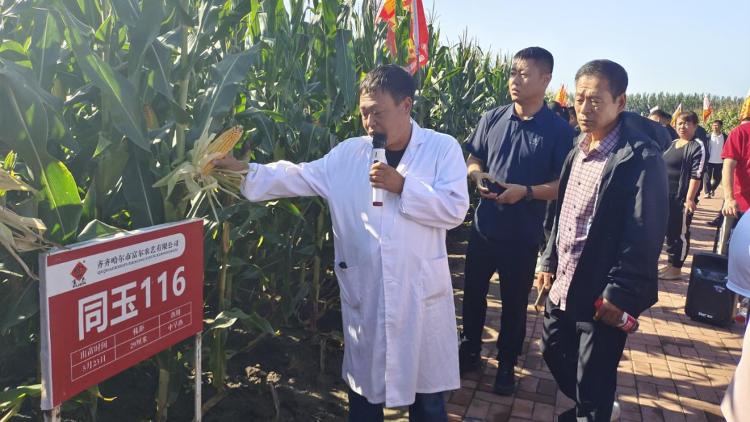 注:公司玉米研发总监王树全介绍“同玉116”玉米品种。