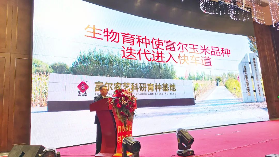 随后,富尔农艺营销副总经理、玉米公司总经理李红岩做了《点亮玉米科技树,开创玉米新未来》的主题报告。他说,富尔农艺作为我国种子行业的头部企业,在当前的种业新形势下,重点围绕“新种质,新技术,新团队,新产品,新服务,新模式”六个维度持续发力,寻求突破创新。在种质创新方面,富尔农艺建立了完备的”寒地黑土”主要粮食作物的种质资源库,并且被列为黑龙江省第二批种质资源保护单位,为我国“寒地黑土”主粮作物下一轮品种更新换代打下了坚实的种质资源基础。在团队建设方面,除了引进了具有国际知名度的孙书库博士后,又组建了两支拥有博士和硕士的专业的研发与测试团队,促使我们科研人员结构更加合理,科研领军人才层次更加高端,科研研发实力更加突出。据统计,2020年富尔农艺在我国种子行业信用骨干企业研发投入占比销售额度排名第8名,并积极筹措资金建设“生物育种实验室”和“富尔农艺作物种质资源库”,开展“寒地黑土”核心种质资源的创制以及具有自主知识产权的分子育种与常规育种研究,已经打造出了一支国内一流的商业化育种团队。在品种创新方面,目前,富尔农艺有近50个产品将陆续出圃,既有具有自主知识产权的“富尔”、“富单”、“富中玉”、“富兴”系列,还有我们横向合作的“美国斯泰”系列和“中种国际”系列玉米产品,大多具备了目前市场急需的突出性状,比如抗病性更好,耐密性更强,商品性更优等优点。在品种测试方面,目前,我们在山西、内蒙、吉林、河北拥有22个测试站(点),在黑龙江拥有40个核心测试点,可以确保每个新投放的产品在不同的种植场景下的最真实种植表现,而我们的5个绿色通道又可以高效地将这些符合种植需求的新产品尽快的投放市场。在服务创新方面,富尔农艺多维入手,一是在新疆、甘肃地区打造核心制种基地,确保种子质量更加优异;二是在国家良种四项指标外再引入活力指标,确保东北倒春寒条件下种子更有发芽优势;三是积极引进人才,扩大专业农化服务队伍,加强配套农化解决方案的迭代升级,以便针对各类农作物病害问题制定针对性专业解决方案。四是在新媒体快手、抖音传播方面内引外联加强品牌、技术传播,内部打造、外部联合农民喜爱的网红,高密度传播,使富尔农艺的客户可以随时接受技术或产品咨询。在模式创新方面,富尔农艺邀请了全国知名咨询公司对玉米产业架构进行了重新梳理定位,并制定了基于全国布局的阿米巴新模式,成功的将玉米营销团队发展成多个事业部,每个事业部都有核心品牌、主营品种、储备品种、细分市场。通过六个方面的创新,富尔农艺将力争点亮我国玉米科技树,开创产业新未来,确保我国粮食供给更安全。