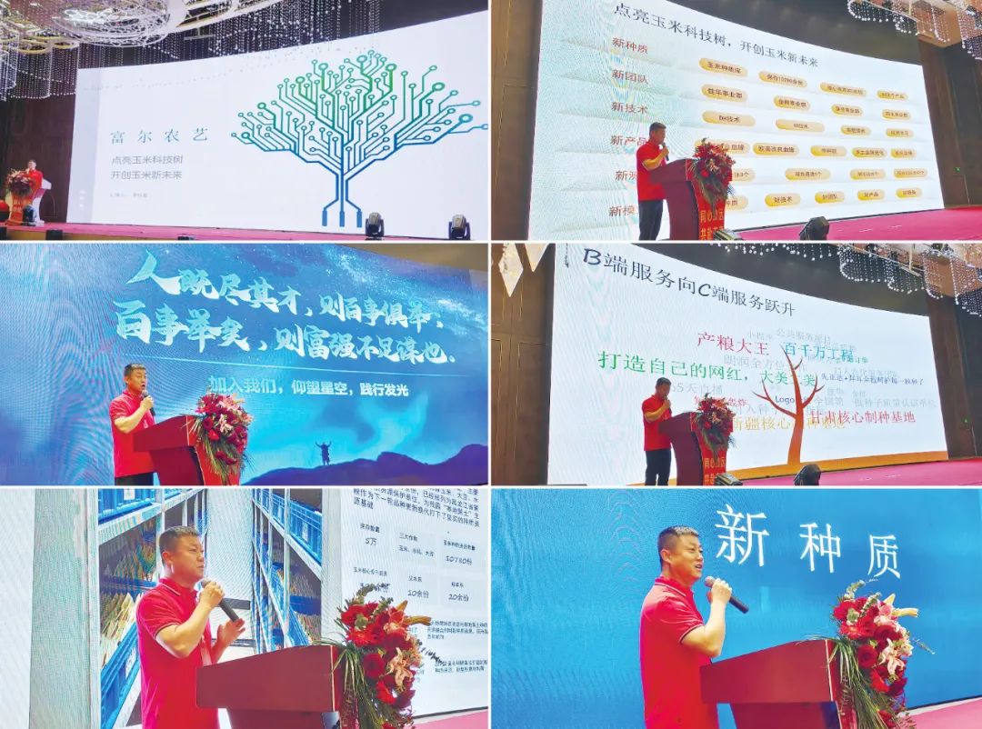 最后,张立董事长做了会议总结讲话。他说,本次“2023年富尔农艺同心致远,共赴未来—富尔玉米新品种鉴评会暨核心经销商峰会”既是富尔农艺积极响应党中央国务院提出的“打好种业翻身仗”的头部种企的历史担当;又是种子行业基石企业履行农业农村部提出的“新一轮千亿斤粮食产能提升行动”同频共振的一次“产品亮剑”,更是一次富尔农艺携手经销商朋友们开启股权合作的“共富时代”。我们相信通过这次与各位经销商朋友们的坚定携手,一定会掀开我省乃至我国玉米种子产业发展的新篇章,迈入玉米种子产业发展的新时代。当前,新一轮农业科技革命和农业产业变革正处在实现重大突破的历史关口,新技术、新产业、新业态、新模式层出不穷,单纯的产品竞争、技术竞争已逐渐演变为区域创新链及创新生态的整体竞争,所以富尔农艺聚合玉米种子科技发展关键要素,通过欧美血缘与本土血缘的多年融合,创制出了一批骨干亲本,并演化出了新一代具有市场穿透力和竞争力的玉米当家新品种,已经陆续开始投放市场,定会形成星星之火的燎原之势。富尔农艺率先在我省开创了“DH+GS”工厂化育种创新体系,抢先进入产品矩阵的量化产出新时代,形成了“销售一代、研发一代、储备一代”的产品格局,确保产品领先优势进一步扩大;率先联合生物育种头部科技企业先正达国创平台等,开展玉米关键共性技术攻关,提升玉米种子核心竞争力,实现转基因玉米商业化种植放开后的抢跑优势和领跑优势,以科技之力让玉米种业焕发出更加蓬勃的生命力。