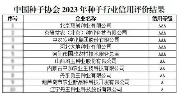 2023年种子行业信用评价结果公示