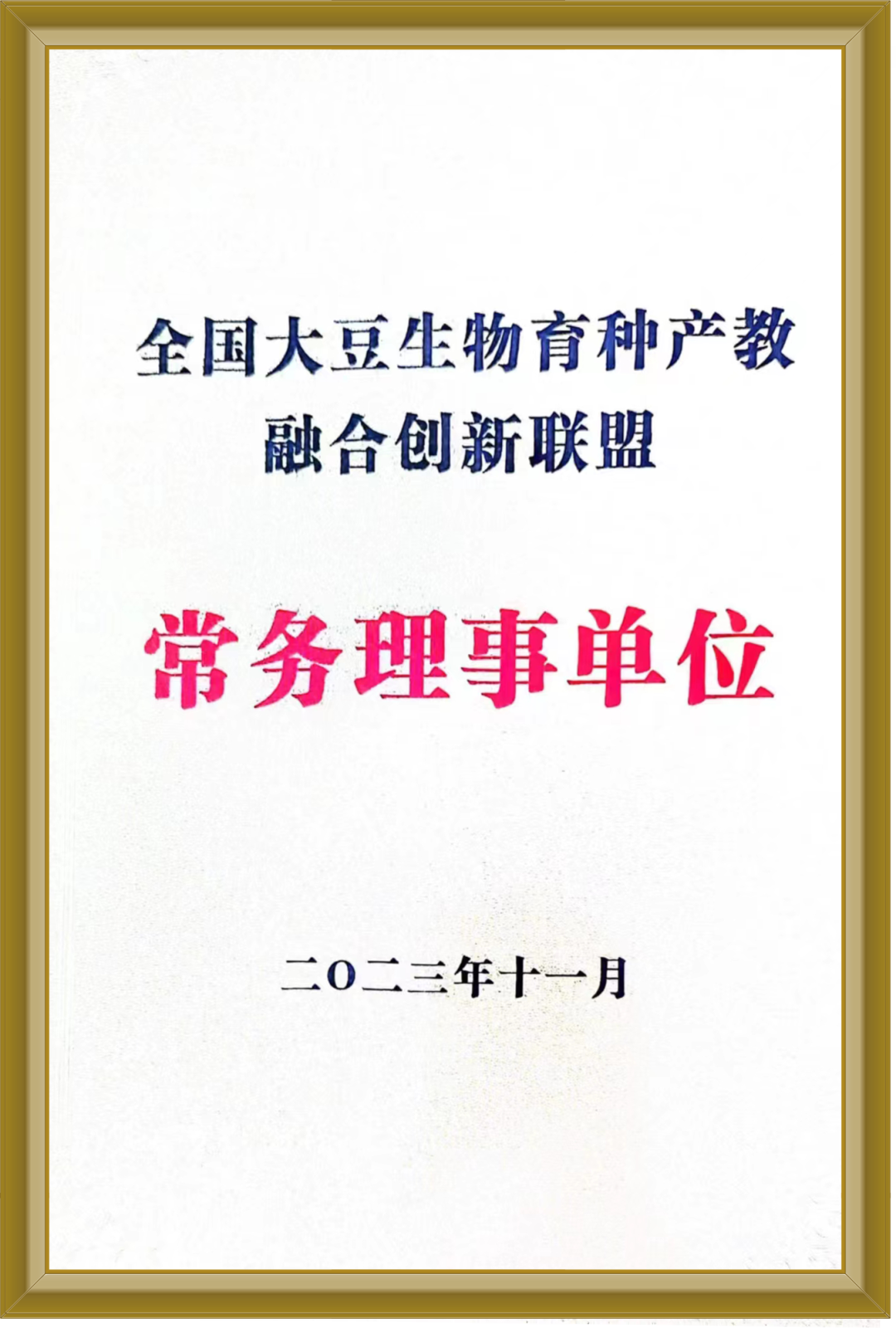 11月,公司当选为“全国大豆生物育种产教融合创新联盟”常务理事单位,发力大豆生物育种,致力培育更多更优质大豆新品种。