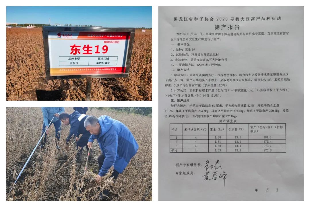 9月26日,以《2023年大豆高产创建活动》的郭泰研究员牵头成立了测产专家组,通过公开、公正、科学的方法对全国推广面积第十位大品种“东生19”进行田间实地测产。大豆新品种“东生19”再次开创我国大豆百亩攻关田的高产新纪录,并被评为 “2023年大豆高产创建活动明星品种”。