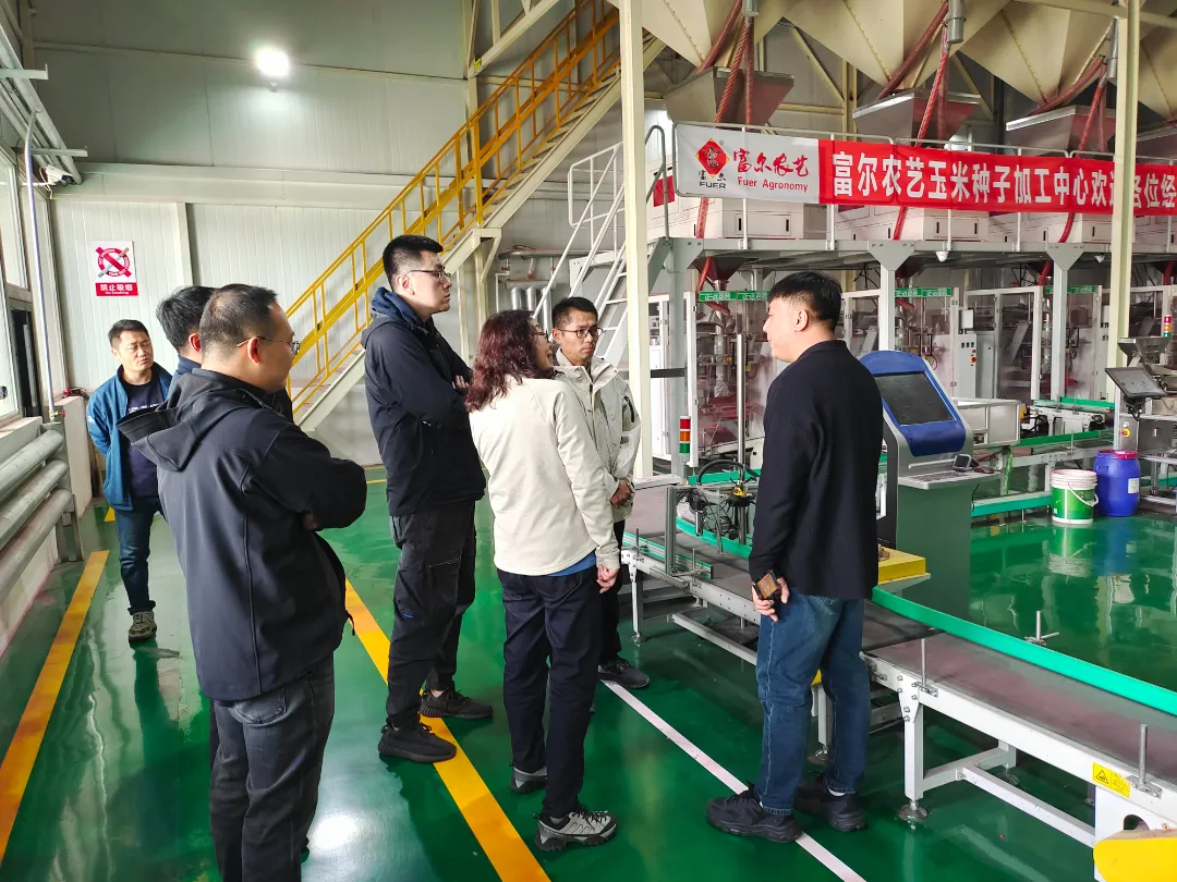 陈寔总经理一行先后参观了公司企业文化展厅、生物育种智能温室、生物育种单倍体实验室、玉米种子数控加工生产车间、产品销售展厅。公司副总经理钱光明向陈寔总经理一行详细介绍了公司的发展历程沿革、企业文化传承、科技创新迭代、单倍体育种规模和公司三大主粮作物种子的生产加工、市场推广情况。在公司生物育种单倍体实验室,陈寔总经理饶有兴致地参观了玉米单倍体幼苗培养过程,详细了解了单倍体从实验室开始的全流程,对富尔农艺单倍体育种的规模和水平给予了高度评价。在公司玉米种子数控加工生产车间,陈寔总经理一行详细了解了种子初筛、精选、包衣、包装、数控平台等工段每一个操作节点的工艺流程,对富尔农艺玉米、大豆、水稻三大作物现代化生产能力给予了充分的肯定。