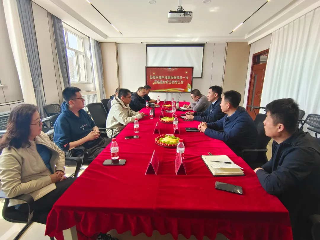 参观结束后,中种国际与富尔农艺高管团队举行了合作交流洽谈会,双方围绕企业战略定位、优势品种许可、联合测试审定等方面进行了深度交流和洽谈。座谈中,陈寔总经理表示,中种国际作为国际化种业公司,在品种资源方面具备一定优势,我们双方有多年的合作基础,中种国际愿与富尔农艺这样的有推广能力、有良好口碑的企业合作,希望我们的合作能够再上新台阶。富尔农艺副总经理钱光明表示,富尔农艺作为东北地区头部种企,在品牌知名度、渠道推广方面具有很强的优势,中种国际和富尔农艺的强强合作,一定可以发挥叠加优势催生出符合黑龙江市场和农民渴求的优质玉米大单品,为黑龙江的农业增产增收和国家粮食安全贡献力量。