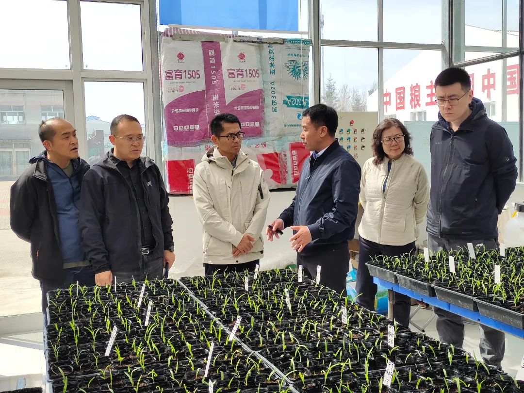 注:陈寔总经理一行参观公司生物育种智能温室玉米单倍体育种炼苗。