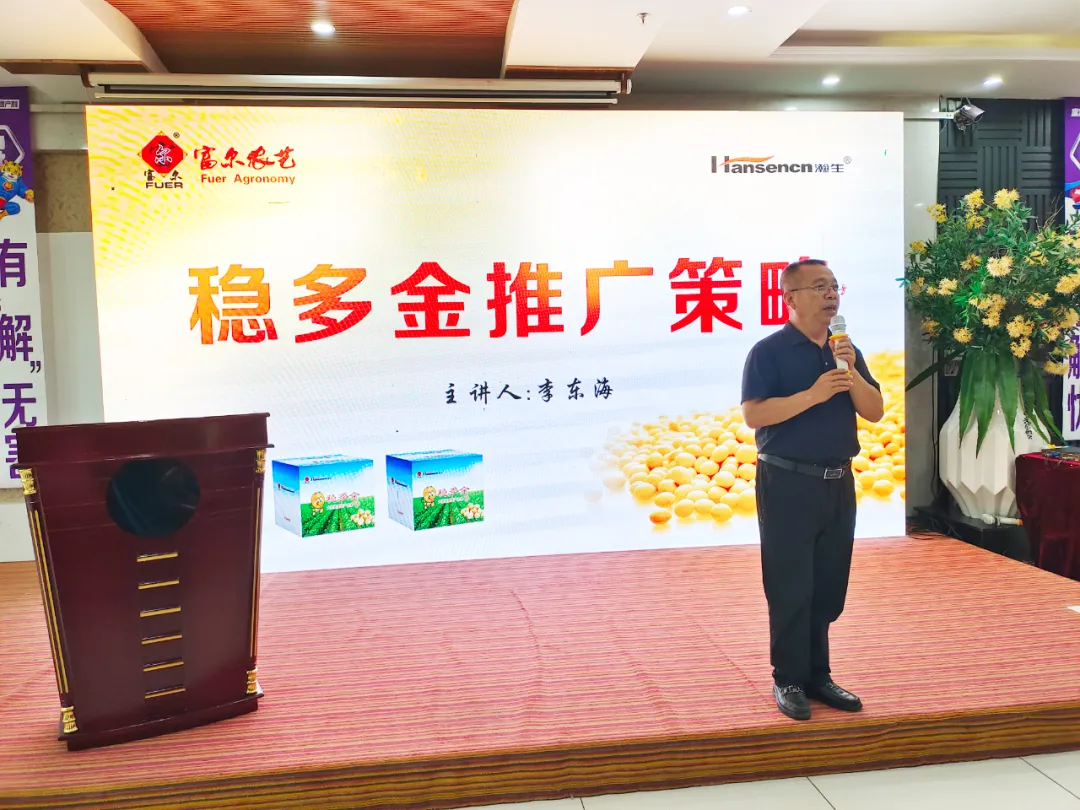注:吉林省科技特派员、一德农业技术顾问李东海做《稳多金推广策略》主题报告。