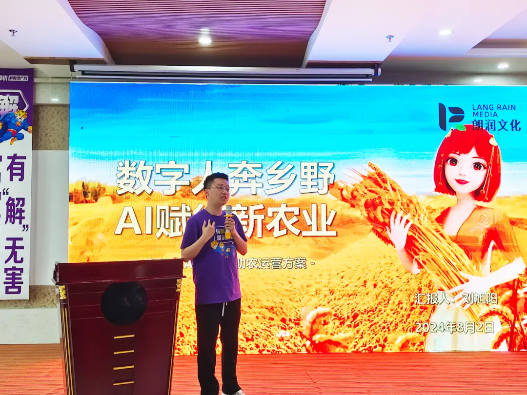 注:朗润传媒运营总监刘旭阳做《数字人奔乡野,AI赋能新农业》主旨报告。