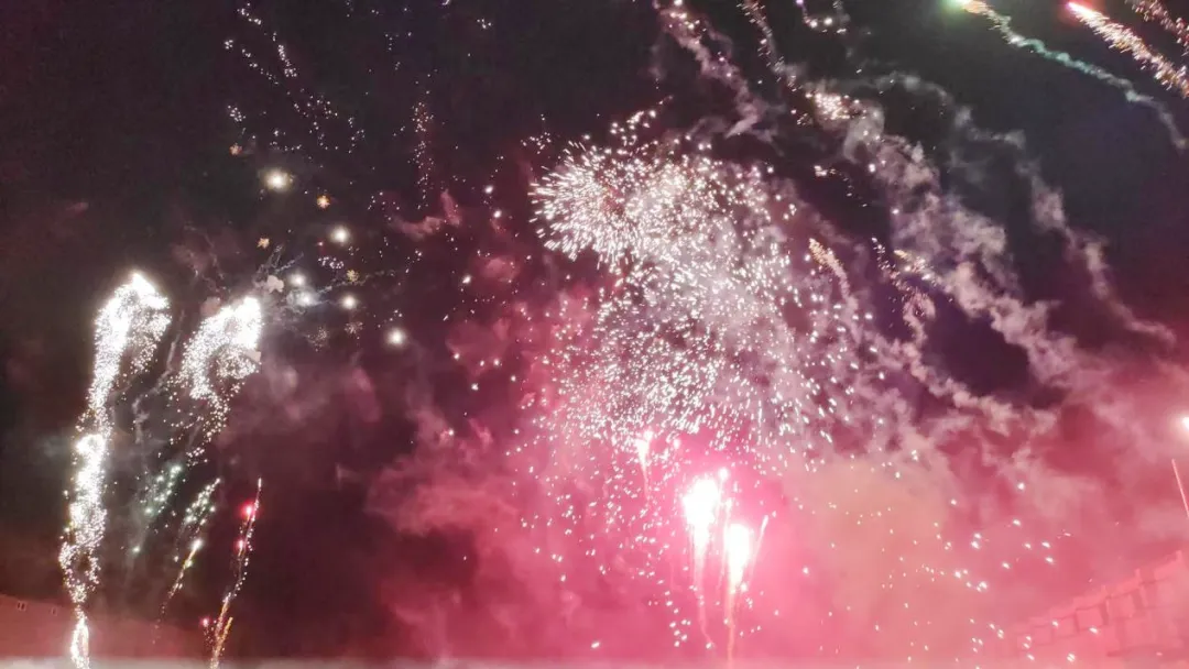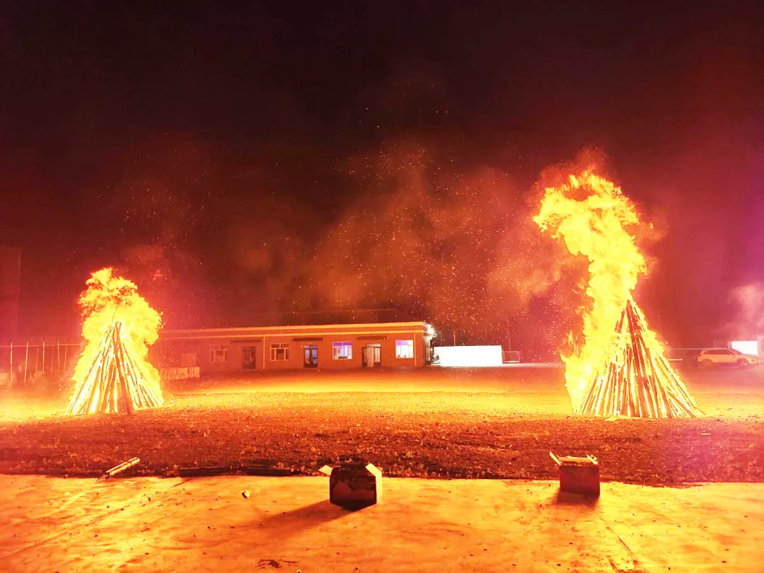 注:璀璨绚烂的篝火烟花绽放在富尔五大的夜空。