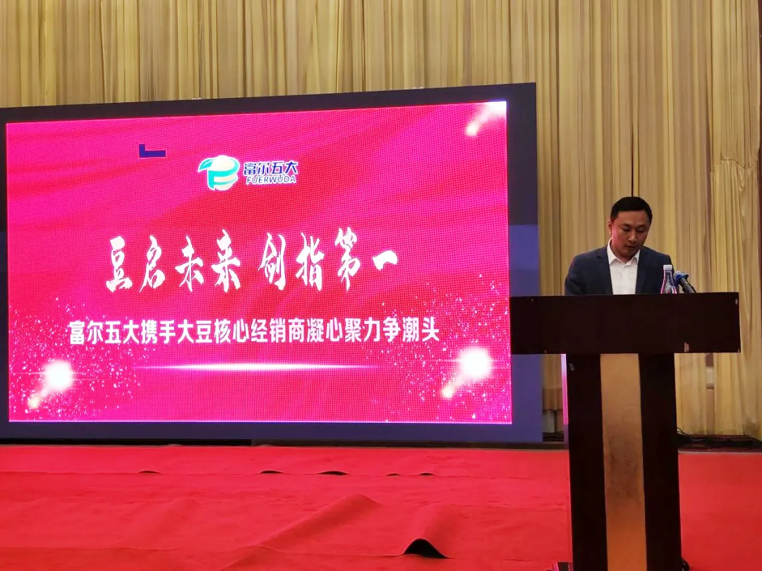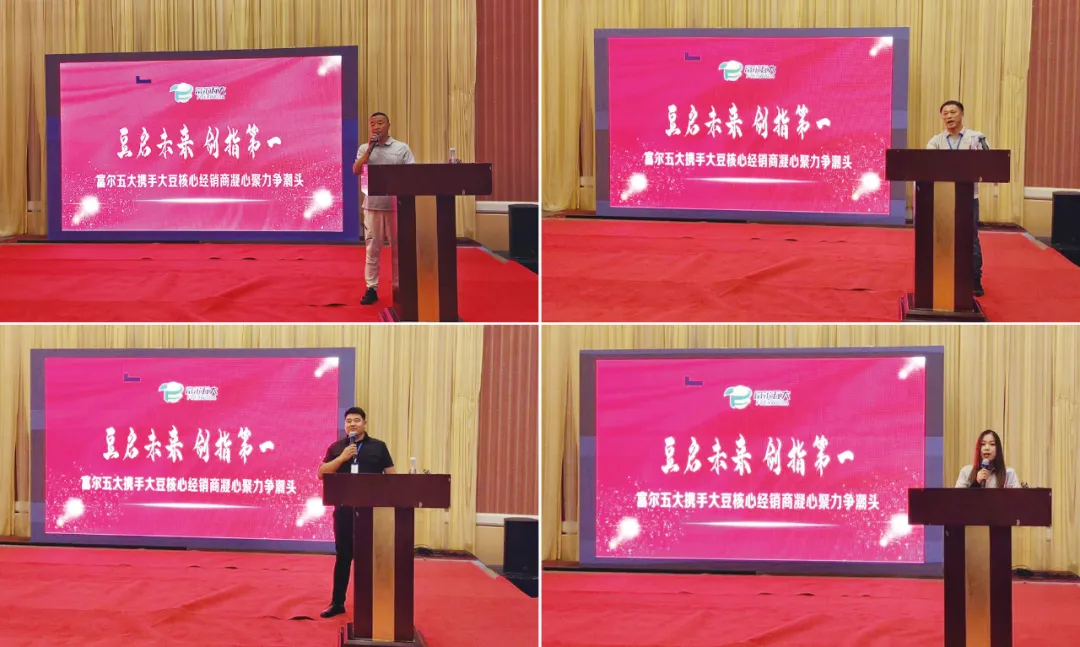 注:富尔五大公司副总经理陈奇做《“豆启未来,剑指第一”2024年富尔五大公司营销战略规划》主题报告。