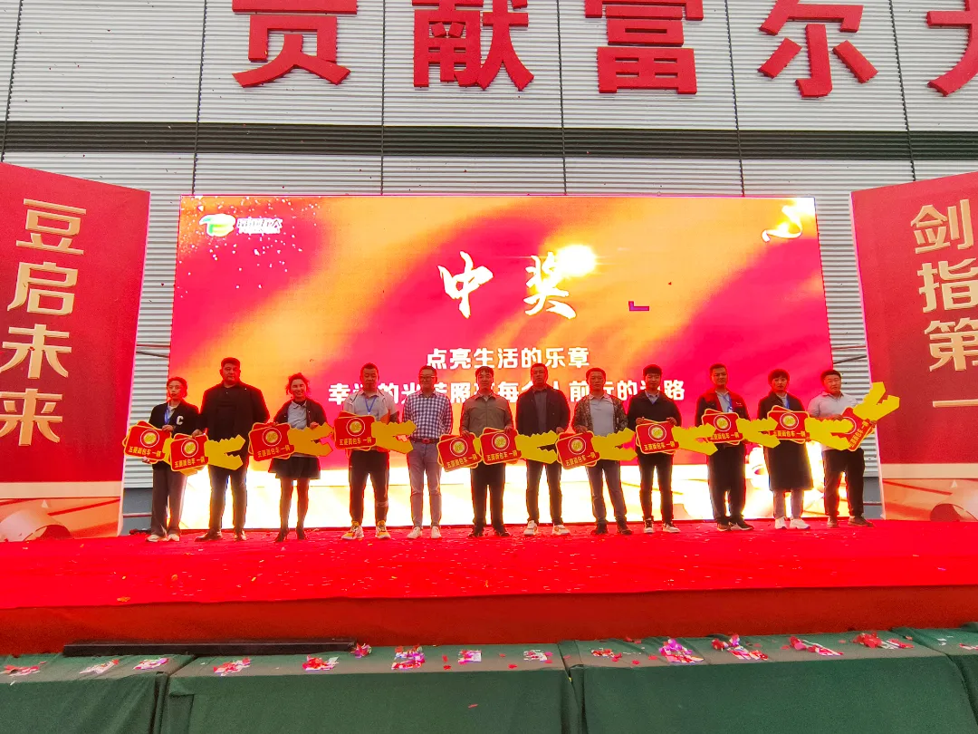 会后,为了表彰在2024年度销售工作中表现突出的优秀经销商,大会举行了隆重的“砸金蛋中大奖”活动,并举行了丰富多彩的篝火晚宴和烟花秀活动,将本次峰会推向了高潮,琳琅满目的奖品和应接不暇的烟花表演受到了参观者一致的赞誉和好评,他们纷纷表示,大公司、大品牌、好产品,在一系列好政策的加持下,富尔五大公司“豆启未来,剑指第一”的宏伟目标一定能够顺利实现,富尔五大公司和全体经销商有信心更有决心携手共进、再创辉煌,为我国大豆产业发展和大豆种植户增收贡献富尔五大力量。