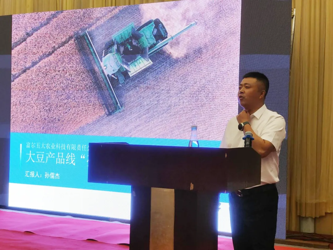注:富尔五大公司总经理孙儒杰做《富尔五大大豆产品线“亮剑”行动》主旨报告。