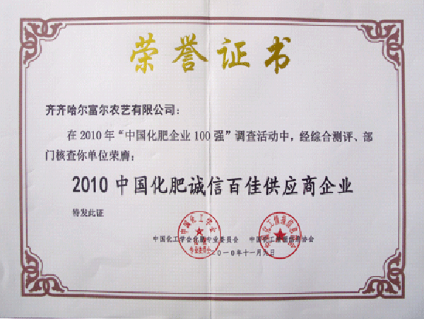 中国化肥诚信荣誉证书