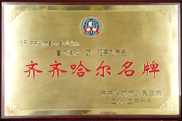 2002年10月,富尔种、药、肥系列产品被齐齐哈尔市人民政府认定为齐齐哈尔名牌。
